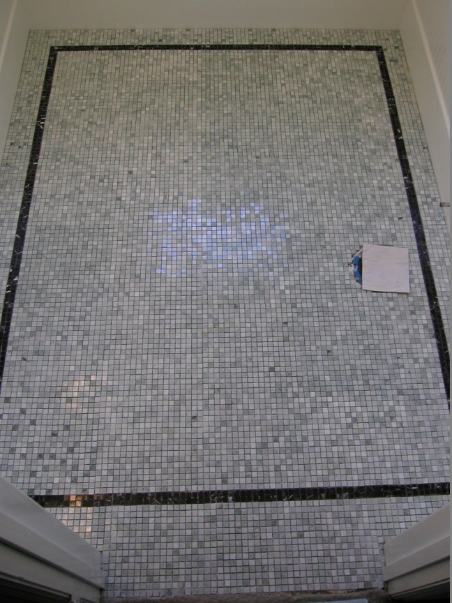 Bathroom Posted on May 26, 2016May 31, 2016 by richwosick Clawfoot cast iron bathtub, with polished nickel trim, wood wainscotting, Andersen double hung window Bathroom floor: green polished marble, with black marble border Related